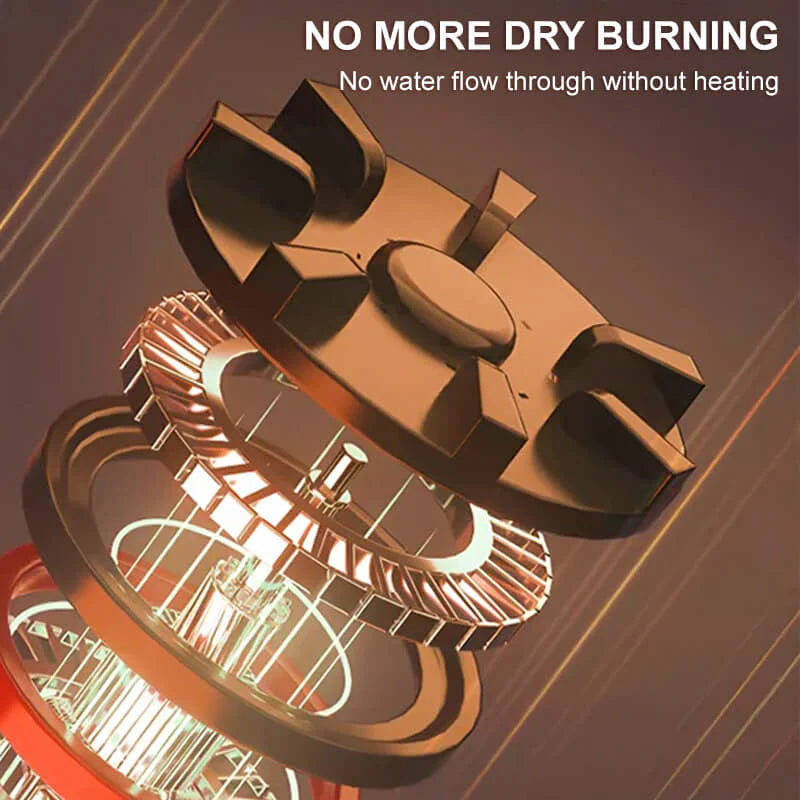 Applied with multiple protection devices, each part undergoes strict tests to ensure 100% safety. The internal water and electricity pipes are designed to work separately to avoid leakage or damage due to scale accumulation. Safe heating, electricity saving, water saving, non-pollution, no exhaust gas. The temperature is adjusted by the water flow control valve or faucet switch.